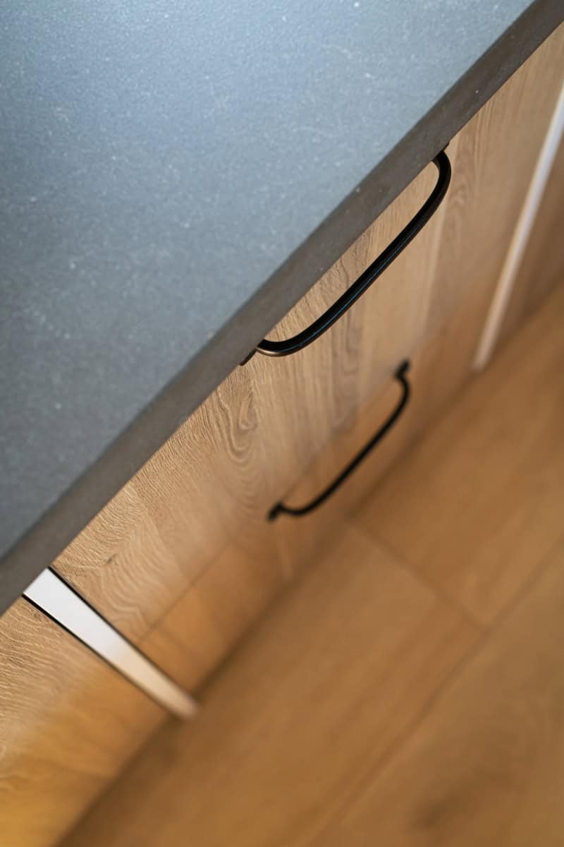 Een schip dat in 1928 gebouwd is stelt andere eisen aan een keuken. Denk aan rondingen in de muren, beperkte rechtlijnigheid en technische voorzieningen. “We moesten wel rekening houden met de belastbaarheid van het elektra. We wilden geen combi, maar echt een aparte oven én magnetron, dat moest er sowieso in.”